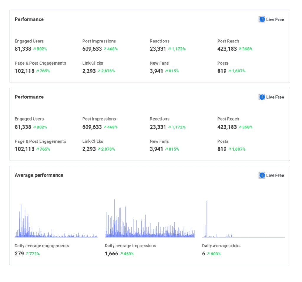 - Increased post impressions on Facebook by 610K
